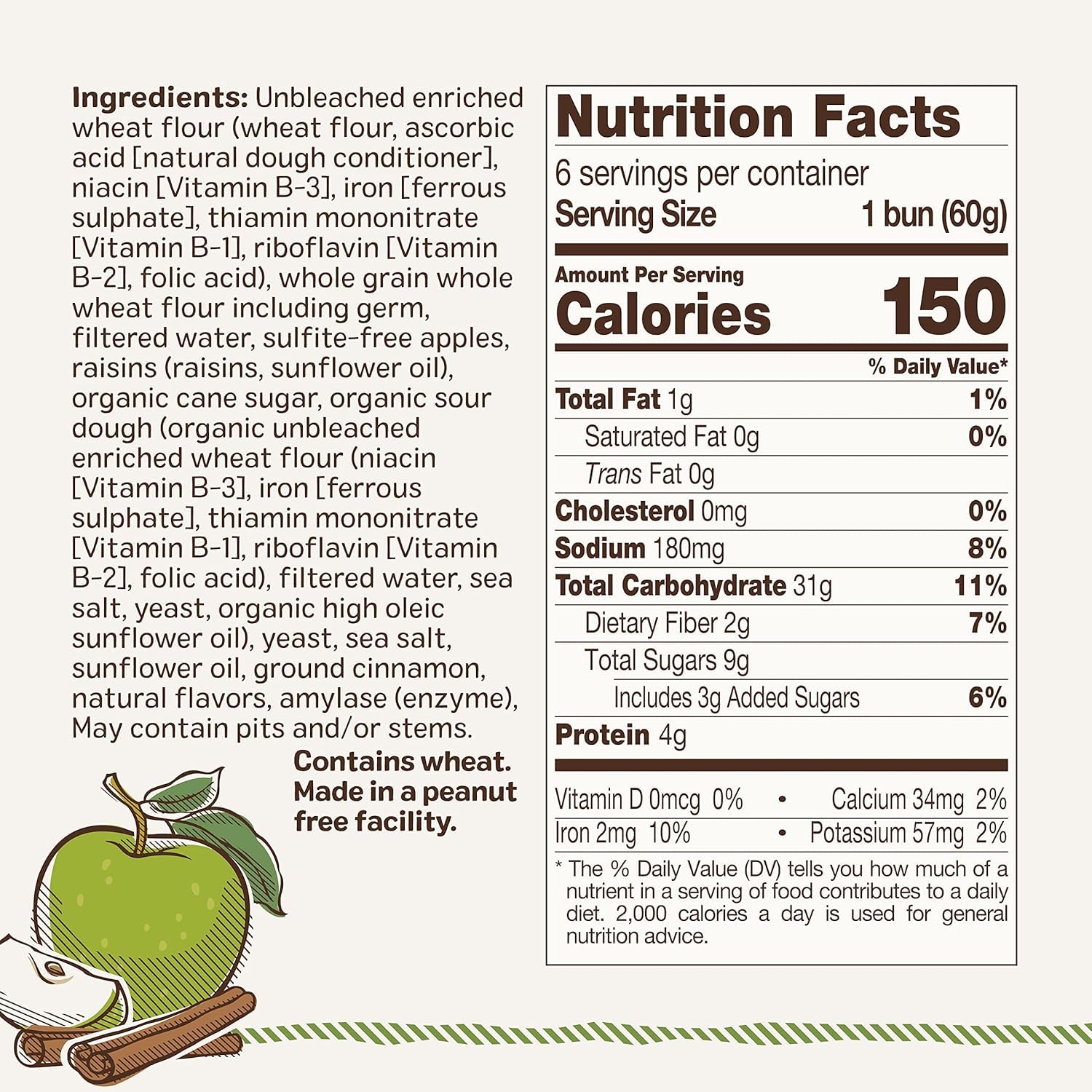 Unbleached Wheat Flour [Wheat Flour, Ascorbic Acid (Natural Dough Conditioner), Niacin, [Vitamin B-3], Iron [Ferrous Sulphate], Thiamin Mononitrate [Vitamin B-1], Riboflavin [Vitamin B-2], Folic Acid], Whole Grain Wheat Flour Including Germ, Filtered Water, Cranberries (Cranberries, Sugar, Sunflower Oil), Organic Cane Sugar, Orange Puree (Concentrated Orange Juice, Water, Concentrated Tangerine Juice, Orange Pulp, Ground Oranges, Orange Oil), Organic Sour Dough (Organic Unbleached Wheat Flour [Niacin [Vitamin B-3], Iron [Ferrous Sulphate], Thiamin Mononitrate [Vitamin 13-1], Riboflavin [Vitamin B-2], Folic Acid], Filtered Water, Sea Salt, Yeast, Organic High Oleic Sunflower Oil), Crushed Oranges, Yeast, Sea Salt, Sunflower Oil, Cultured Wheat Starch, Citric Acid, Amylase (Enzyme). Unbleached Wheat Flour [Wheat Flour, Ascorbic Acid (Natural Dough Conditioner), Niacin [Vitamin B-3], Iron [Ferrous Sulphate], Thiamin Mononitrate [Vitamin B-1], Riboflavin [Vitamin B-2], Folic Acid], Whole Grain Wheat Flour Including Germ, Filtered Water, Sulfite-Free Apples, Raisins (Raisins, Sunflower Oil), Organic Cane Sugar, Organic Sour Dough (Organic Unbleached Wheat Flour [Niacin [Vitamin B-3], Iron [Ferrous Sulphate], Thiamin Mononitrate [Vitamin B-1], Riboflavin [Vitamin B-2], Folic Acid], Filtered Water, Sea Salt, Yeast, Organic High Oleic Sunflower Oil), Yeast, Sea Salt, Sunflower Oil, Ground Cinnamon, Cultured Wheat Starch, Citric Acid, Amylase (Enzyme).